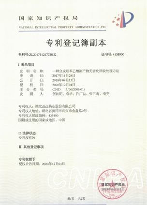 湖北迅達(dá)藥業(yè)股份有限公司是專(zhuān)業(yè)從事醫(yī)藥原料藥及中間體生產(chǎn)經(jīng)營(yíng)的國(guó)家重點(diǎn)高新技術(shù)企業(yè),也是國(guó)家 4A 標(biāo)準(zhǔn)化良好行為企業(yè)、湖北省智能制造試點(diǎn)示范企業(yè)、湖北省國(guó)際科技合作基地、湖北省信息化與工業(yè)化融合試點(diǎn)示范企業(yè)、湖北省創(chuàng)新型企業(yè)、湖北省上市后備“金種子”企業(yè)、省級(jí)“專(zhuān)精特新”企業(yè)、上云標(biāo)桿企業(yè)。公司被評(píng)為湖北省醫(yī)藥工業(yè)五十強(qiáng)、湖北省醫(yī)藥行業(yè)創(chuàng)新型企業(yè)十強(qiáng)、湖北省醫(yī)藥行業(yè)出口型企業(yè)十強(qiáng)、湖北省優(yōu)秀企業(yè)、湖北省“重合同守信用”企業(yè)、湖北省模范勞動(dòng)關(guān)系和諧企業(yè)、湖北知識(shí)產(chǎn)權(quán)示范企業(yè)、中國(guó)外貿(mào)出口先導(dǎo)指數(shù)樣本企業(yè)。